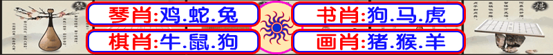 060期:琴棋书画【画棋琴】开:狗09对 061期:琴棋书画【书画棋】开:虎29对 062期:琴棋书画【琴棋画】开:羊24对 063期:琴棋书画【书琴棋】开:兔28对 064期:琴棋书画【琴书画】开:牛18错 065期:琴棋书画【书画棋】开:虎05对 066期:琴棋书画【画琴棋】开:發00对 (琴)鸡蛇兔(棋)牛鼠狗
